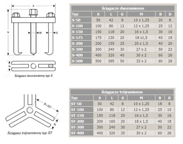 Ściągacze przeznaczone są głównie do ściągania łożysk tocznych osadzonych na czopie lub w obudowie. Mogą być wykorzystane również do demontażu tarcz, kół pasowych, wirników, kół zębatych i tym podobnych elementów.